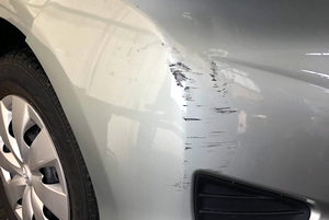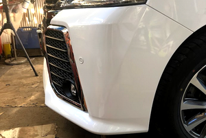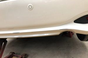 こちらも本来ならばバンパーを外してキャリブレーションして、となるとこの程度の傷でも高額修理となるところです。可能な限りの最安方法の見極めが大事かと思います。