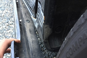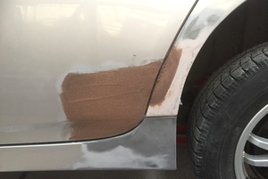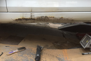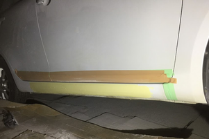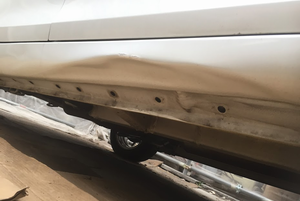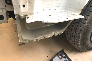 | スイフト | ロッカーパネル補修。本来なら交換のところを予算に合わせた修理にするために現物修理しました。