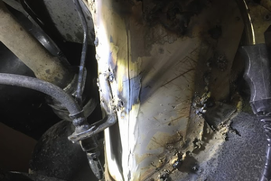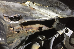 | L375タント | リヤのフレームの錆によって車検が通らないので鉄板を切り出しあてがって溶接しコーキングの後チッピングというゴム質の黒を吹いて仕上げています。車検も問題なく通りました。