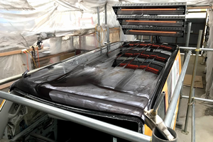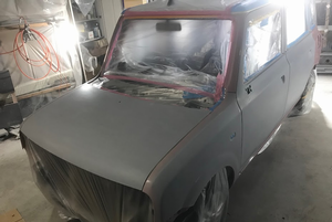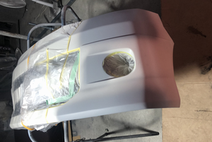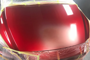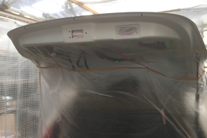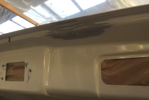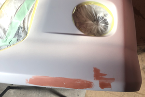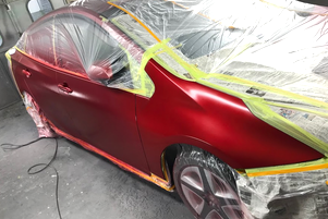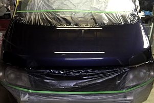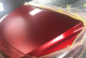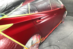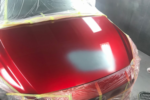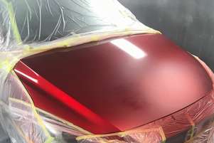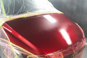 | デミオ | ボンネット塗装。高度な技術を要するマツダの赤ですが、綺麗に色が決まりました。