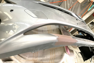 | ヴェゼル | 変形バンパーの修理をさせて頂きました。特殊な形状の為テクニックを必要としますが、キレイに修理可能です。