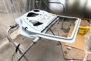 | ランエボ8 | アッパーサポート 錆転換及び下地塗装。錆がひどいアッパーサポートですが、交換をすると事故歴がついてしまうので、現物の錆を落とせるだけ落とし転換剤を塗り、パテ処理後塗装しました。
