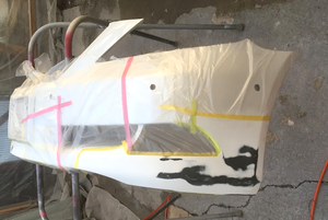 (バンパーキャンペーン)カラーコード / 1J1 / キズと変形がありましたが、熱処理で歪みを修正し、片面塗装で済ませられると判断し20,000円に抑えました。