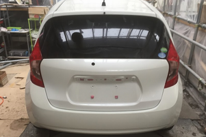 | 12ノート | (バンパーキャンペーン)日産カラーコードQAB / 本来ですと、バンパーを外し、ソナーのキャリブレーションが必要となりますが、当社では傷の度合いから、そのまま作業しソナーをいじらない判断をし、パールではありますが20000円に抑えることができました。