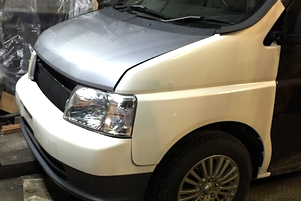 | ステップワゴン | ボンネット、左フロントフェンダー、ヘッドライト、フロントバンパー交換中古品使用の板金塗装修理です。カラーもオリジナルですがこのように元通りです。